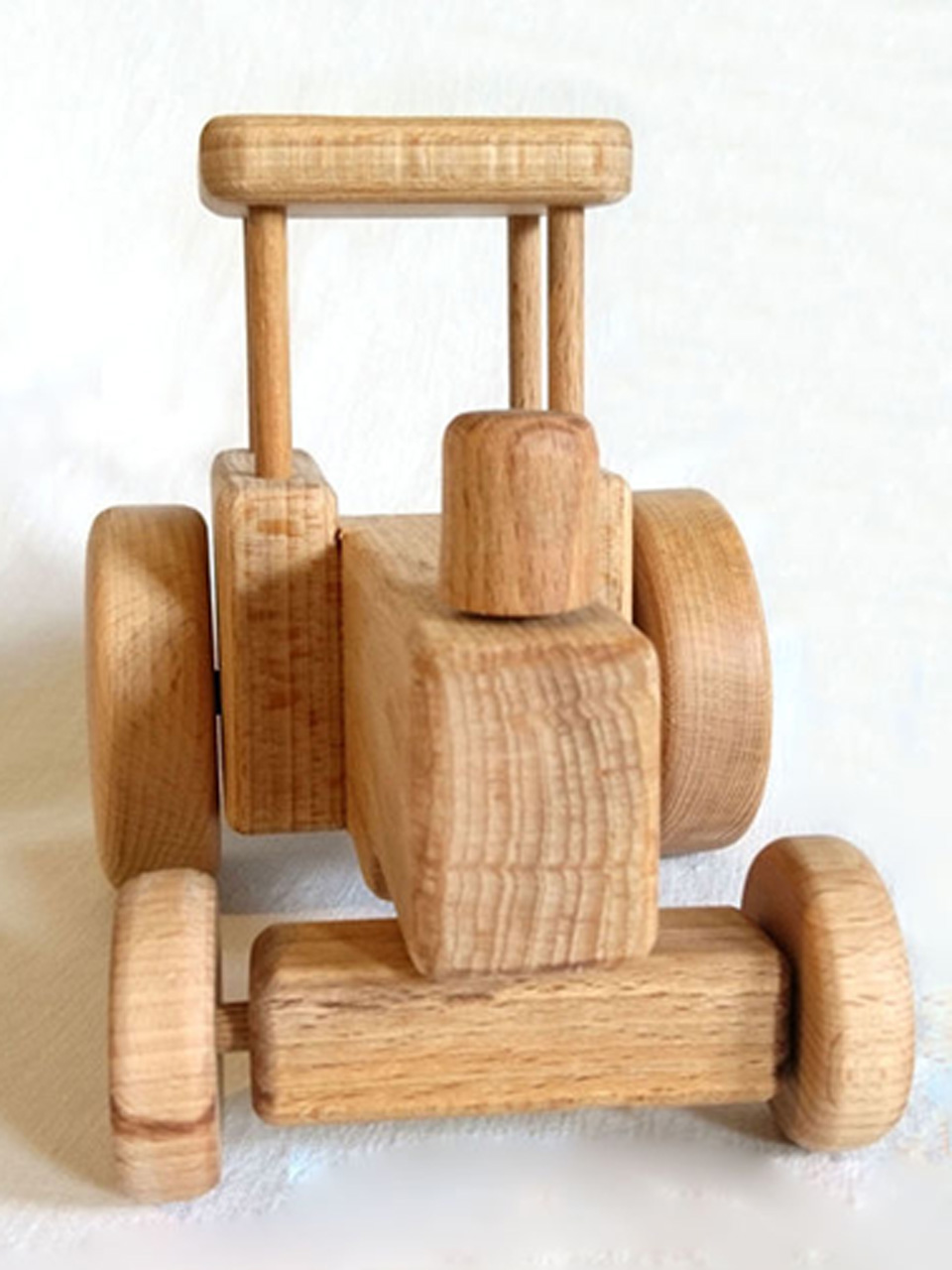 Der Trecker mit Anhänger ist aus massivem Buchenholz gefertigt.